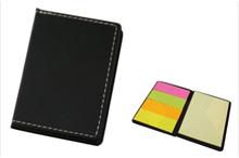 Bloco de anotações de couro sintético com post-it. Bloco de anotações e post-it com aproximadamente 20 folhas. Tamanho total (CxL): 10,5 cm x 7,5 cm Gravação em 1 cor na capa já incluso.