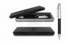 Estojo de papelão com interior aveludado (12358) com caneta metálica (10BRER148B). Personalização da caneta a laser, gravação no estojo opcional.