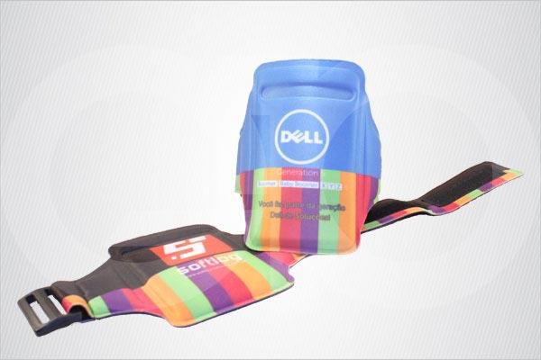 Braçadeira para Smartfones e iPods, ajustável ao braço com fecho em velcro. A braçadeira possui isolante térmico e camada interna aderente deixando o celular adaptado perfeitamente. Protege contra impacto e riscos no aparelho e é lavável. Prático e higiênico.